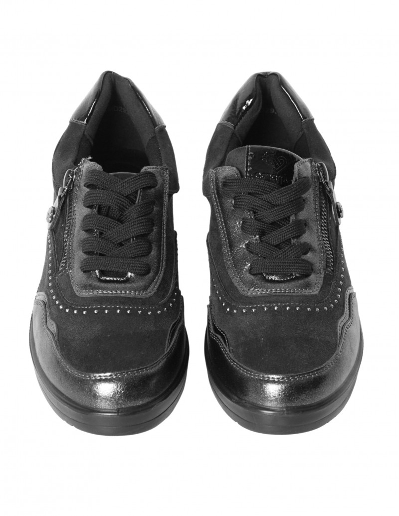 ¡Máximo comfort con un toque urbano! Estas zapatillas deportivas de Amarpies en color negro son la opción ideal para llevar comodidad y estilo a tus outfits diarios. Su diseño moderno incorpora una sutil cuña interna estiliza todos tus looks.