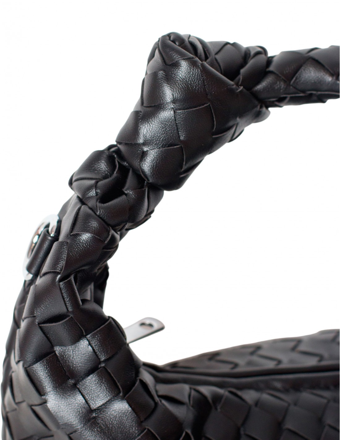 Revoluciona tu look con este sofisticado bolso trenzado negro, el diseño hobo perfecto que fusiona moda y practicidad. Su textura de cuero trenzado es un claro sello de tendencia, ideal para elevar cualquier outfit.
