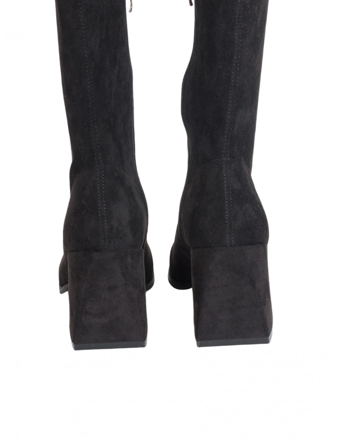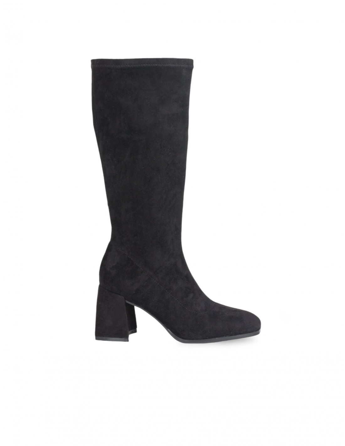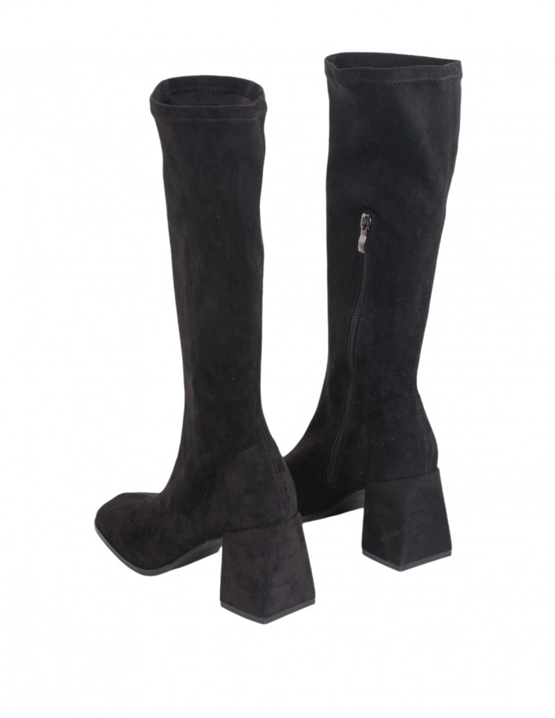 Estas botas altas elásticas son el complemento ideal para la temporada de otoño e invierno. Su diseño por debajo de la rodilla en textil elástico negro que imita al ante, los hace ideales para estilizar cualquier tipo de pierna. Cuentan además con una cremallera lateral para facilitar el calce. Y con una puntera cuadrada y un tacón de 7,5cm, ofrecen comodidad sin sacrificar elegancia.