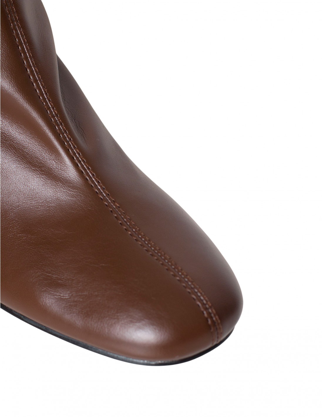 Este botín de caña media es la definición de versatilidad, listo para convertirse en el pilar de tu armario. Su acabado de efecto piel liso en un tono marrón le da un look pulido y combinable.