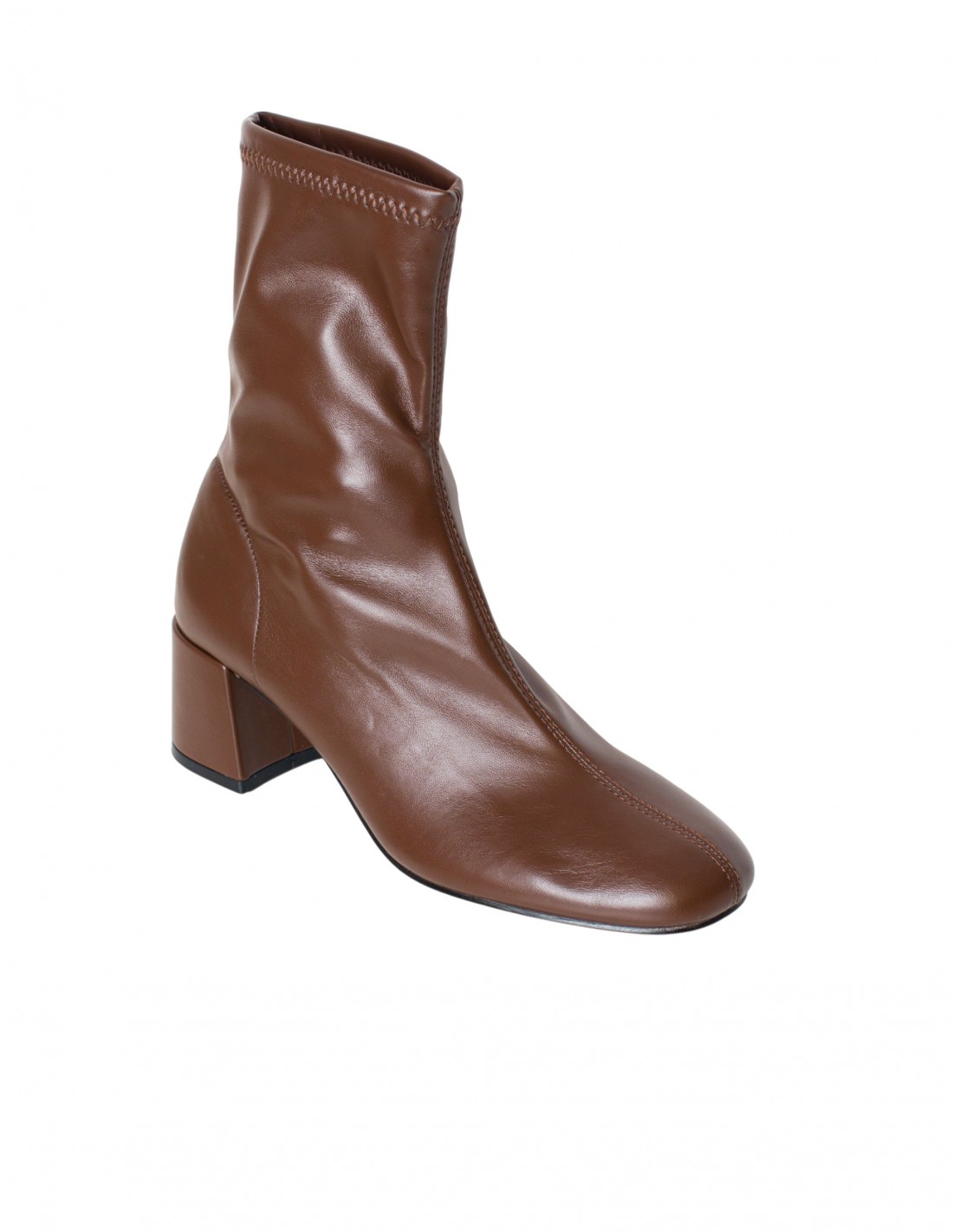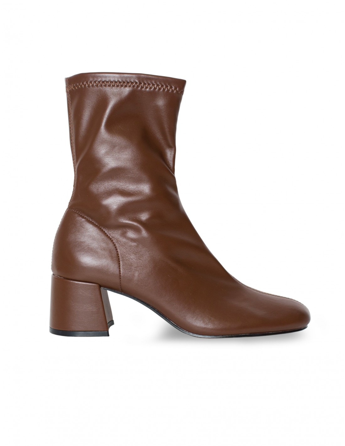 El diseño sigue la tendencia estilo calcetín, ajustándose cómodamente al tobillo para una silueta estilizada y moderna. Su construcción sin cremallera es minimalista y clean. El tacón medio y ancho proporciona una elevación cómoda y estable, ideal para llevar todo el día. Su punta ligeramente cuadrada añade un toque de tendencia sin limitar su capacidad para combinar con cualquier outfit, desde faldas hasta pantalones.