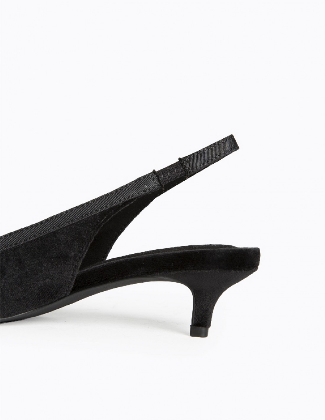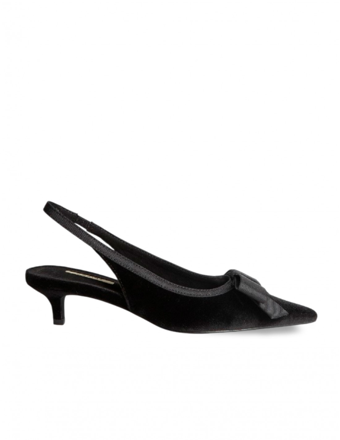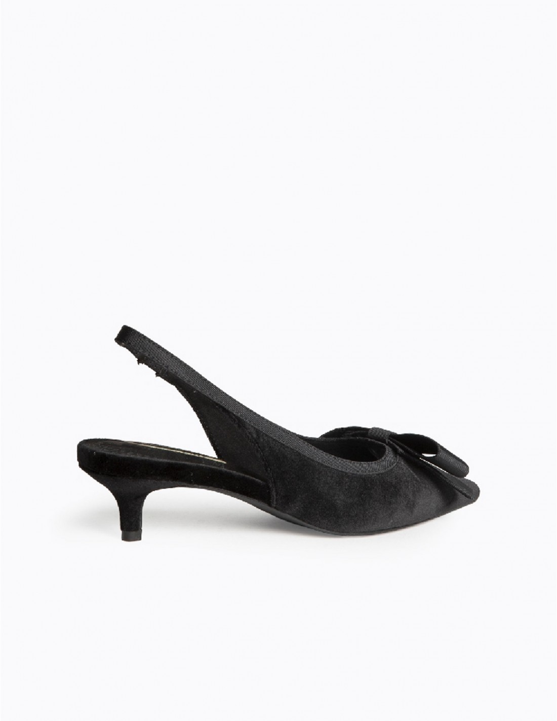 Tienen una elegante punta fina y un coqueto tacón kitten heel de 3 cm, ideal para aguantar toda la noche sin renunciar al estilo. El detalle más cute es la lazada de tejido sobre el empeine. Además, son súper cómodos gracias a su plantilla acolchada confort y el elástico en la tira trasera que facilita que te los pongas y quites. Son el must-have para llevar con unos jeans rotos y un blazer o con tu vestido de fiesta favorito.