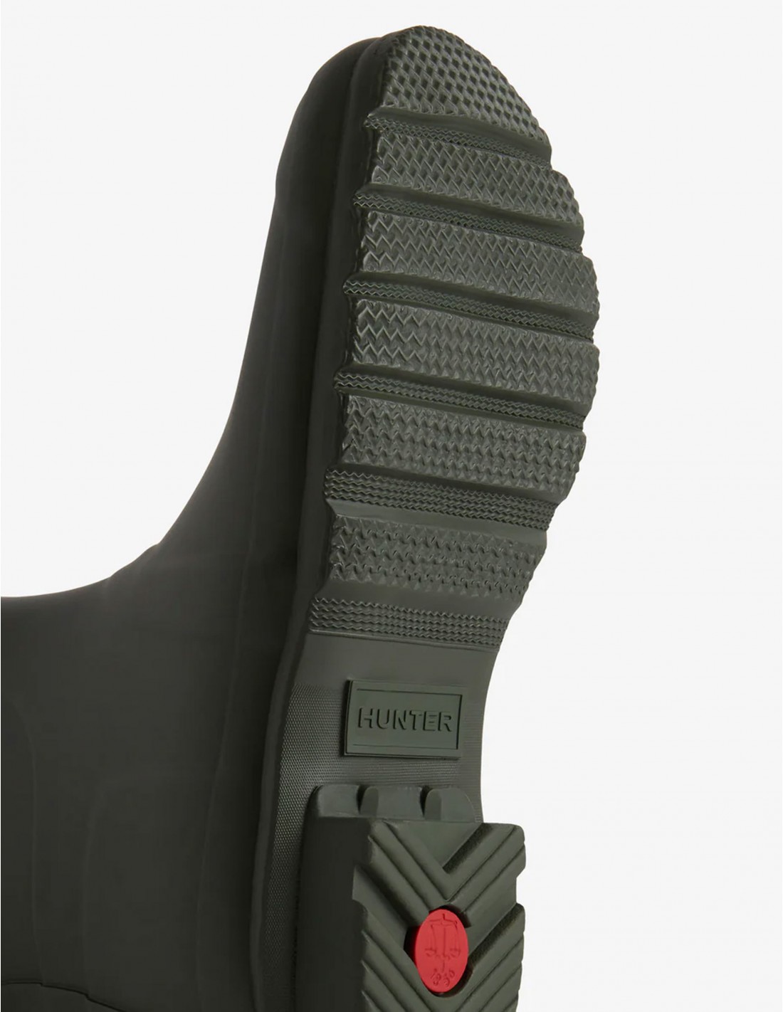 Fabricadas en goma natural, cada par es una obra de artesanía, ensamblado a mano a partir de 28 piezas y vulcanizado para una protección superior contra el agua. El diseño de caña alta en color verde militar luce el clásico patrón de la suela Hunter y la hebilla lateral ajustable en la parte superior. Por dentro, cuentan con un forro y plantilla de poliéster 100% reciclado. Recuerda usarlas con calcetines (preferiblemente los Hunter) para evitar el contacto de la piel con el caucho.