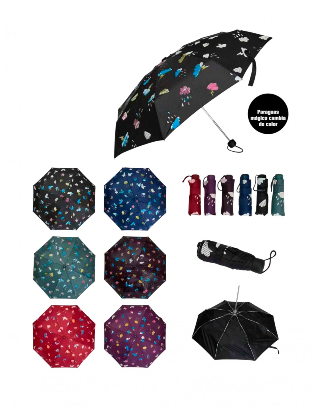 Olvídate de los modelos clásico y aburridos con este paraguas plegable en color violeta. Su diseño divertido de nubes y gotas cambia de color al mojarse con el sorprendente efecto "paraguas mágico". Está diseñado para resistir las inclemencias del tiempo gracias a su sistema antiviento y la solidez de sus varillas. Es muy cómodo de usar gracias a su mango de goma y su diseño plegable te facilita el transporte cuando no lo necesites. ¡Destaca en los días grises de lluvia con este paraguas cambia color!