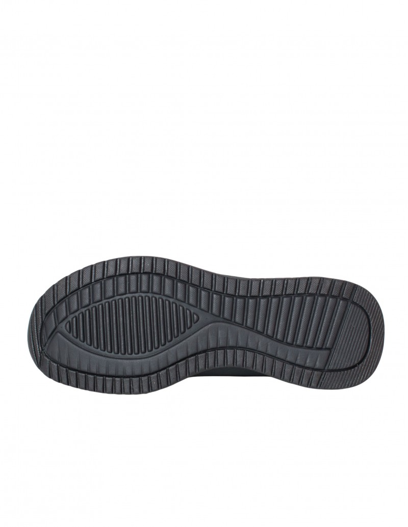 • Exterior de suave textura en piel y material textil, con suela sintética.