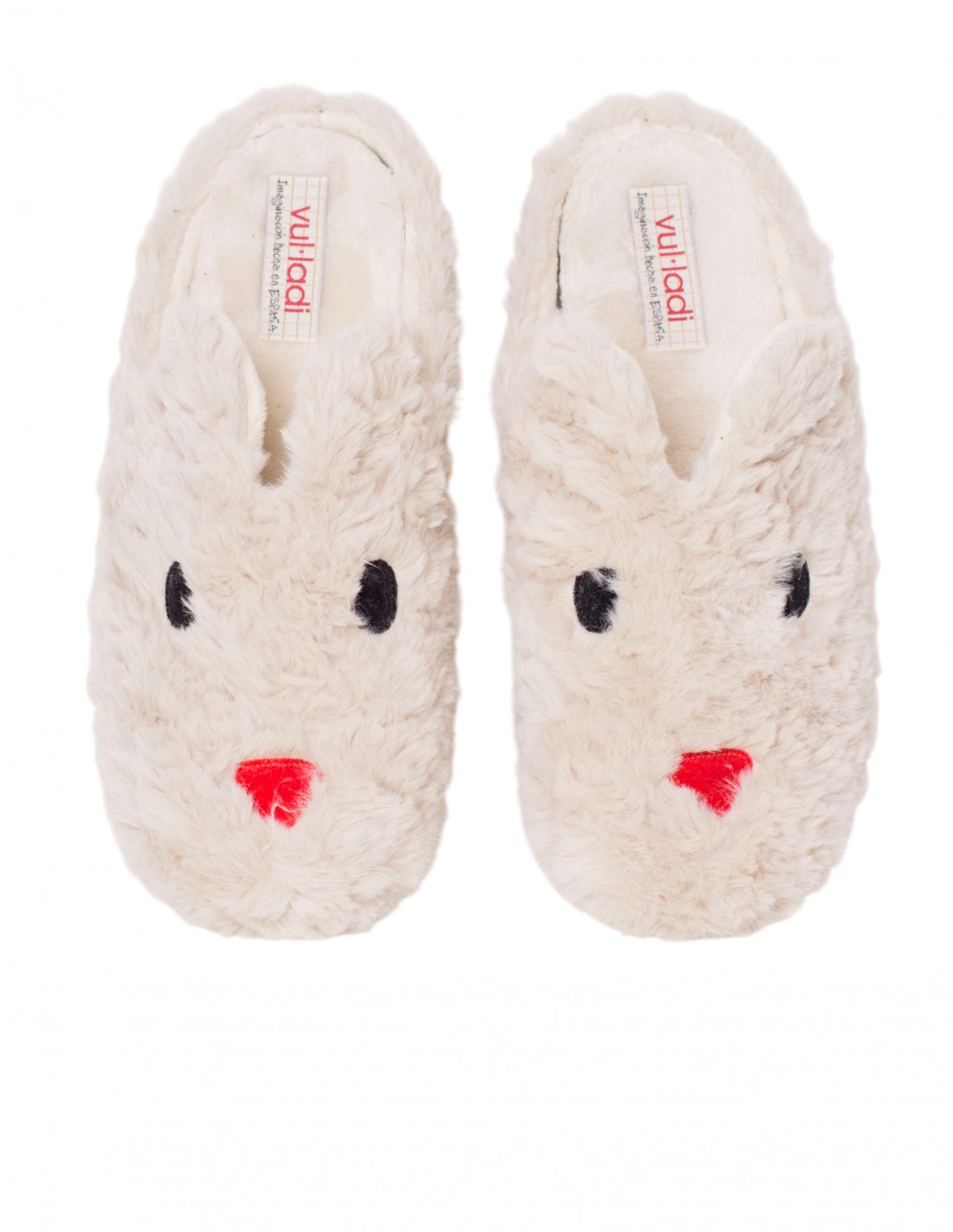 El diseño simula la carita de un conejo, con un suave pelo exterior en color beige que es puro mimo. Fíjate en el detalle: tienen unas coquetas orejitas y una naricita roja bordada en el empeine. Son super calentitas, ideales para mantener tus pies abrigados todo el invierno. Además, son un producto de calidad Fabricado en España. ¡Pies calentitos y looks de casa de diez!