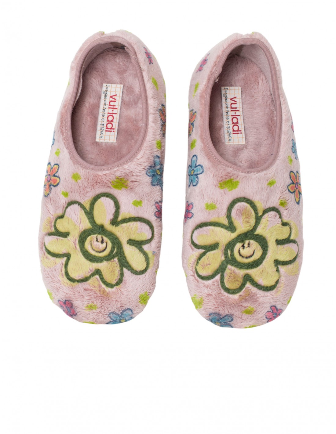 ¡La alegría de un jardín en tus pies! Estas zapatillas de casa para mujer de la marca Vulladi son el toque perfecto de color y diversión para tu hogar. Con un diseño cerrado, el exterior es suave y muy agradable al tacto. Son originales, bonitas y súper cómodas. El estampado principal es un dibujo de flores, dos de ellas grandes en la parte central que tienen caras sonrientes. Son ideales para los días en los que toca plan de sofá. Están hechas en España, lo que garantiza una excelente calidad. Son ideales para tener un detalle original y bonito con un ser querido.