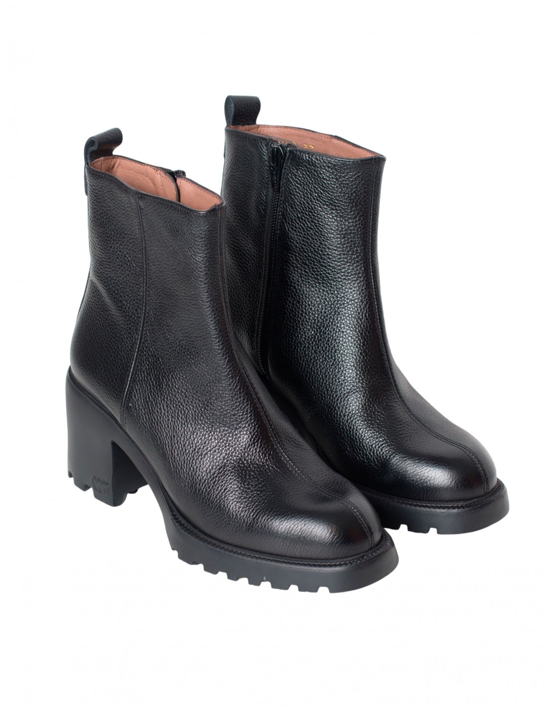 Los botines ILMA 05 de Wonders son un básico con un toque rebelde. Confeccionados en piel texturizada negra y un diseño pulido, son increíblemente versátiles para cualquier look metropolitano. Lo más top es su performance. Incorporan la tecnología WondersFLY™ en la suela para una ligereza y confort espectaculares, y la plantilla MemoryGel que amortigua cada paso. Su tacón alto (7,5 cm) y ancho (forma bloque) es súper estable y estiliza sin restar comodidad. Además, con su suela track y el cierre de cremallera, están listos para la batalla diaria.