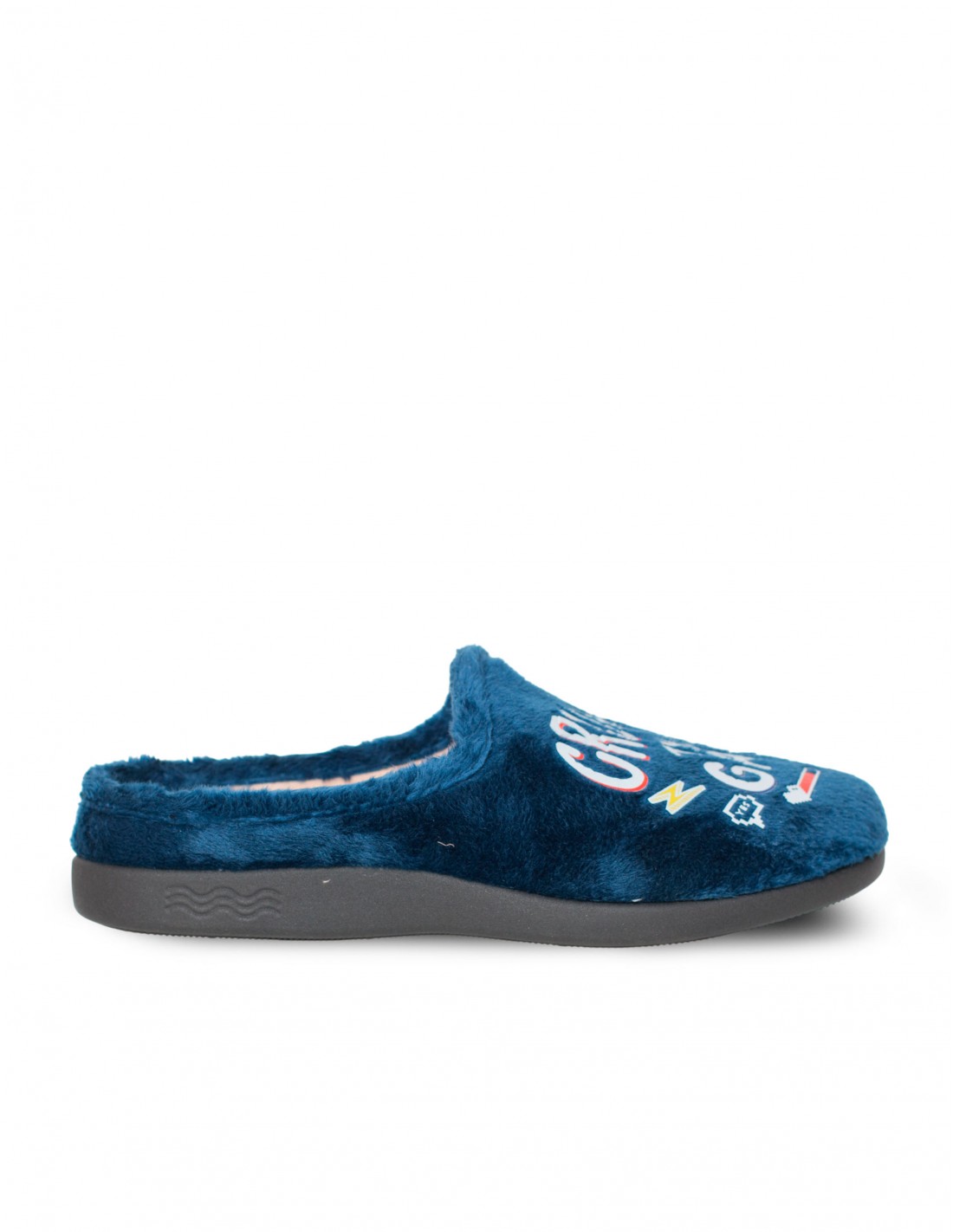 Son las zapatillas de casa perfectas para estar calentito, ofreciendo un diseño práctico y cómodo. Cuentan con una suela antideslizante para mayor seguridad y una plantilla extraíble, facilitando la limpieza y el ajuste. Su diseño abierto en color marino incorpora ilustraciones de estética gamer y la frase "Crunch this Game".