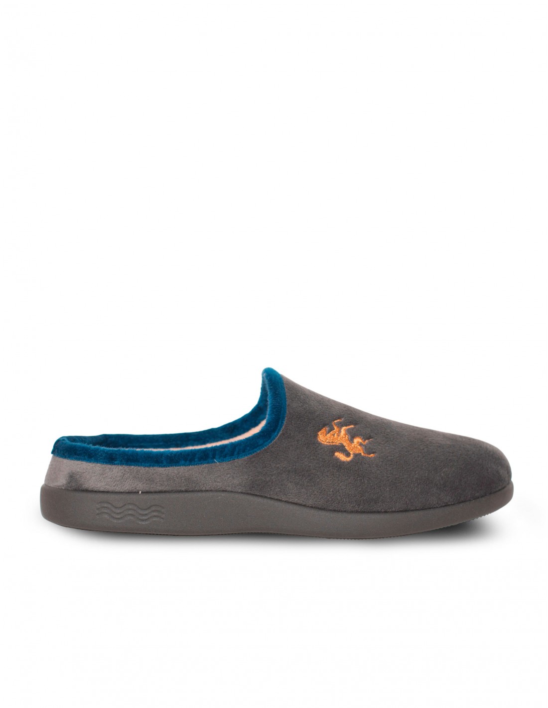 Estas zapatillas de casa para hombre son ideales para esos momentos de descanso en casa, convirtiéndose en tu básico imprescindible. Su diseño abierto permite una comodidad extra para tus días en casa. Confeccionadas en pelo gris suave con un ribete en azul marino que le aporta un contraste elegante. El detalle de un caballo bordado le aporta el toque final al diseño. Para una comodidad y funcionalidad óptima, incorporan una plantilla extraíble y una suela antideslizante. Además, están hechas en España, por lo que su calidad está más que asegurada.